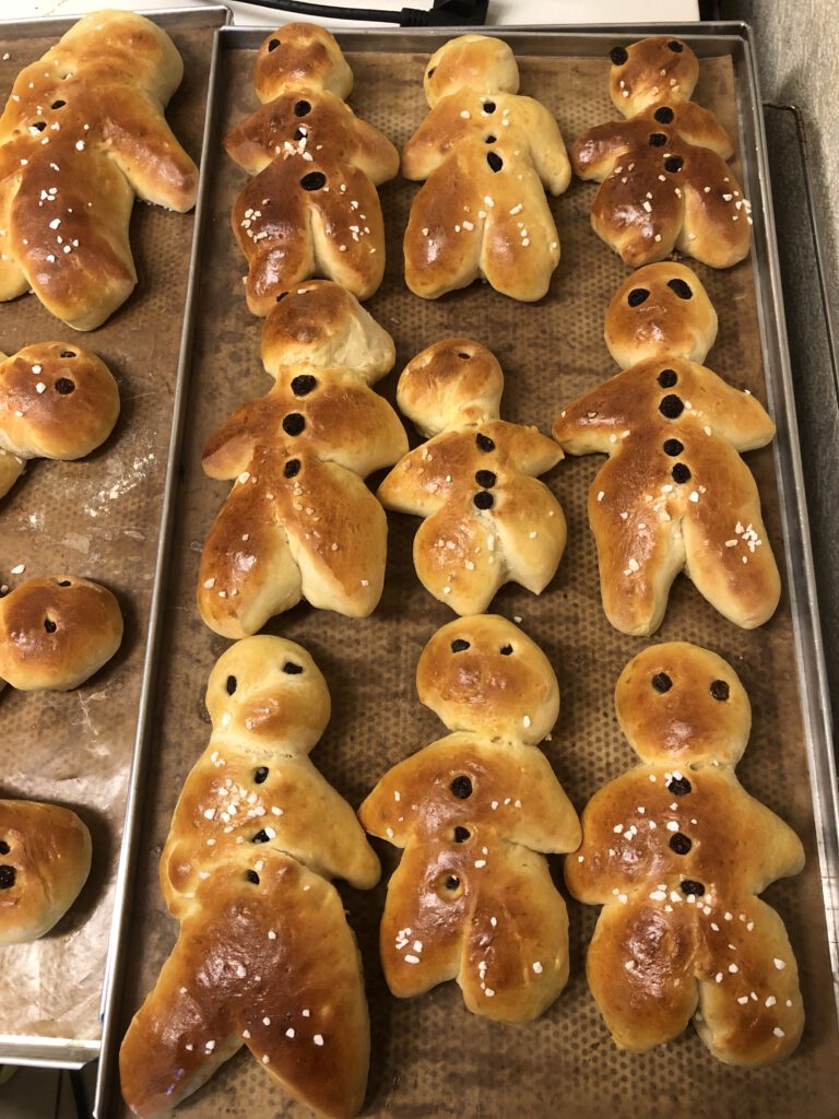 Selbst zu backen bedeutet, sich Zeit zu nehmen. Man knetet den Teig, sieht, wie er aufgeht, und formt mit den eigenen Händen kleine Figuren, die jede für sich ein Unikat ist. Kinder lieben es, die Rosinen zu setzen – manchmal an der richtigen Stelle, manchmal eher frei interpretiert. Beim Backen entstehen Geschichten, Erinnerungen und ein Gefühl von zuhause.